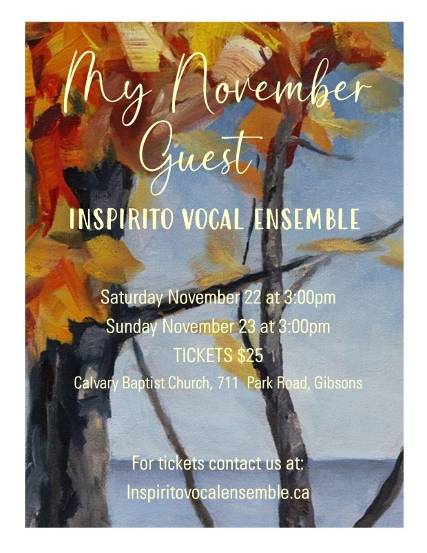 Welcome to the online home of Inspirito Vocal Ensemble! We are a group of treble voices who enjoy making all kinds of music together. We rehearse in Gibsons, British Columbia, yet our members come from all along the Sunshine Coast and the Greater Vancouver area. Join us!